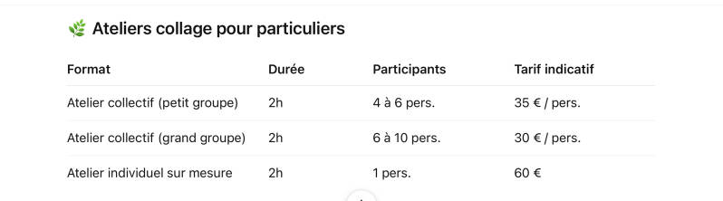 Pas besoin de savoir dessiner pour créer : il suffit de découper, coller et se laisser guider. Je vous accompagne dans la composition, le choix des couleurs et le dépassement des blocages, tout en respectant votre personnalité et votre rythme. Le tout dans une atmosphère chaleureuse.
